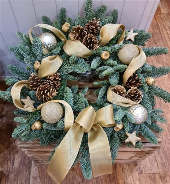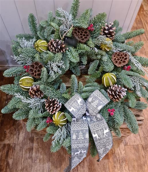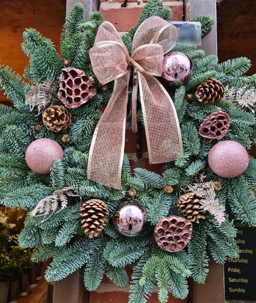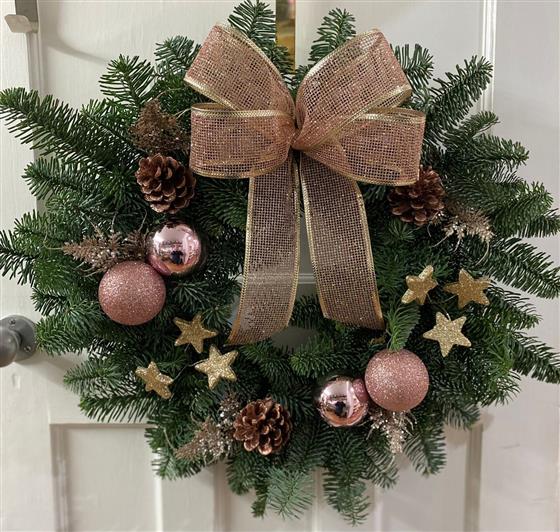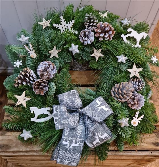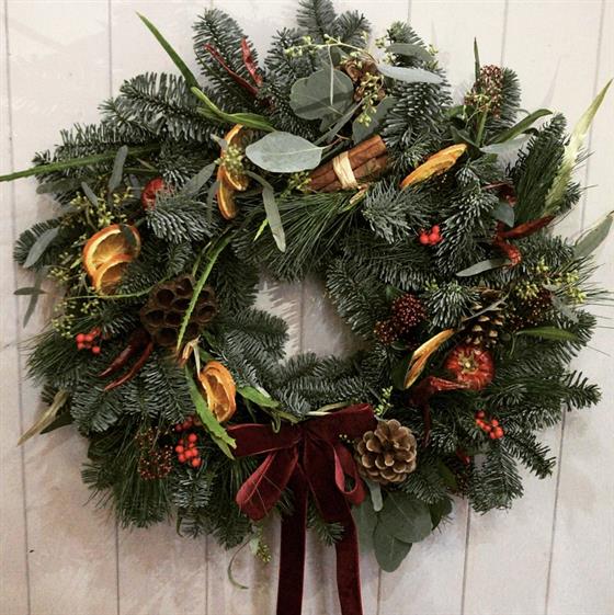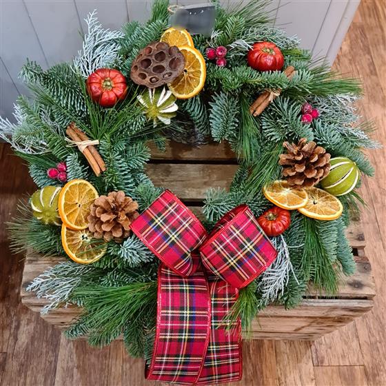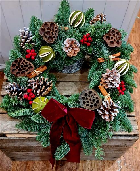 A thoroughly festive wreath. Each one hand made and unique.